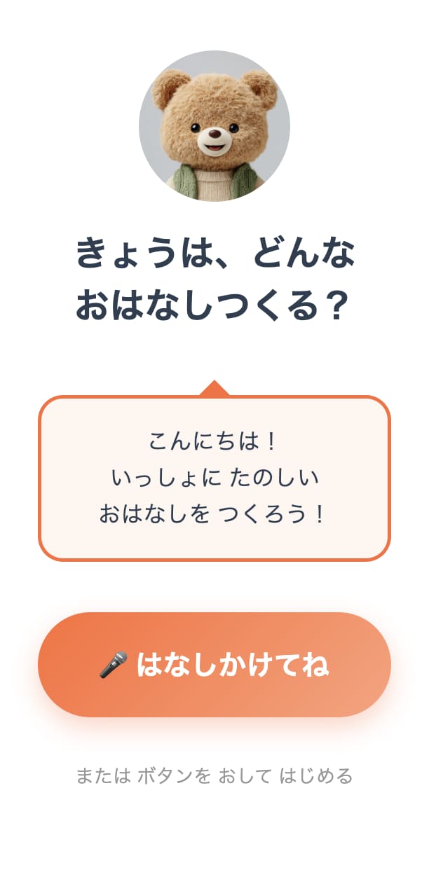 「今日はどんな冒険をしようか?」AIが優しく問いかけます。主人公は誰?どこに住んでる?どんな特別な力を持ってる?お子さまの想像力が、自然に動き出します。